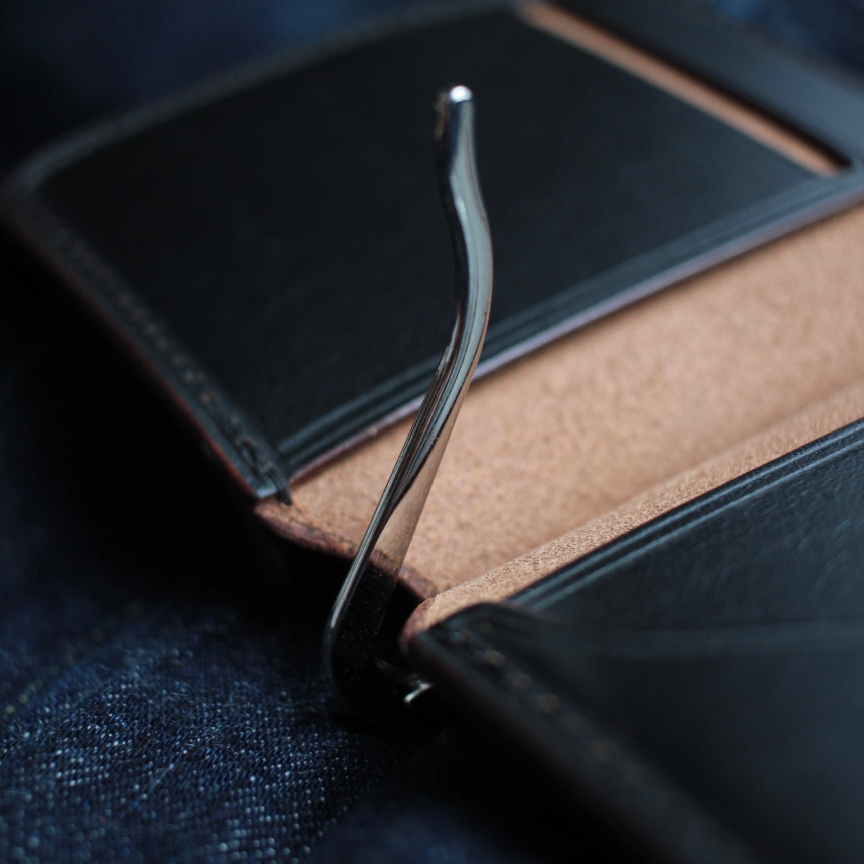 シンプルながらも機能的な構造を備えた、マネークリップタイプのウォレット。