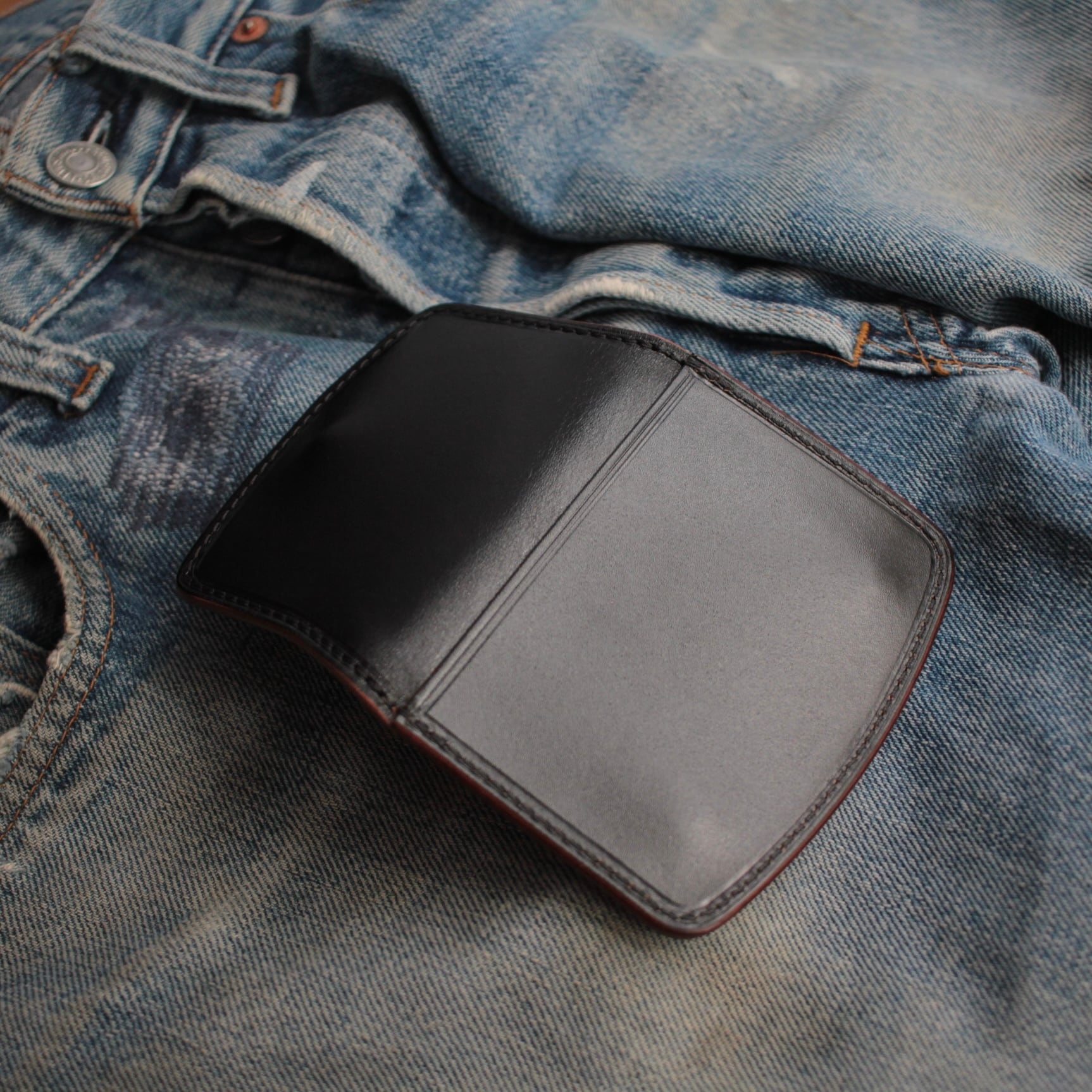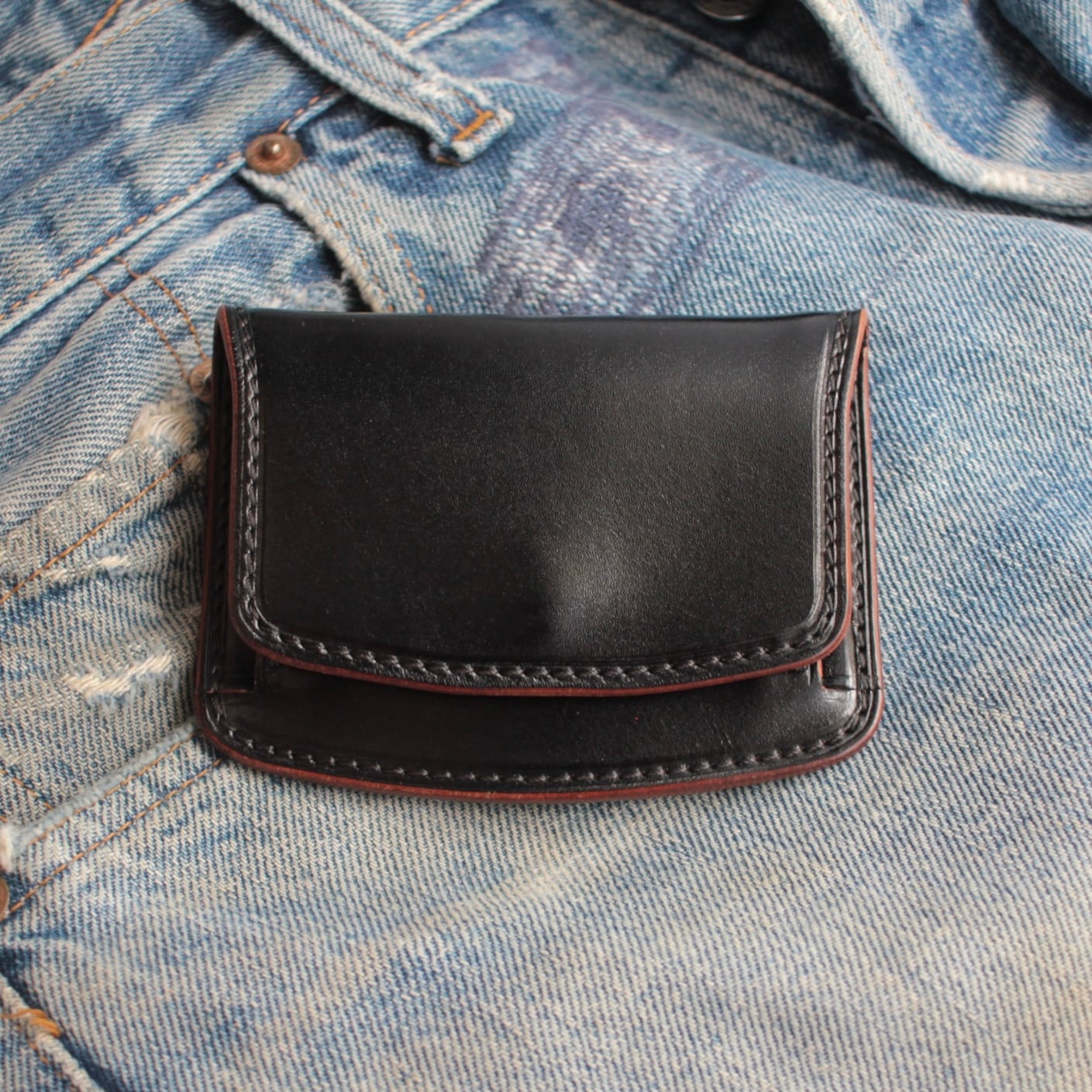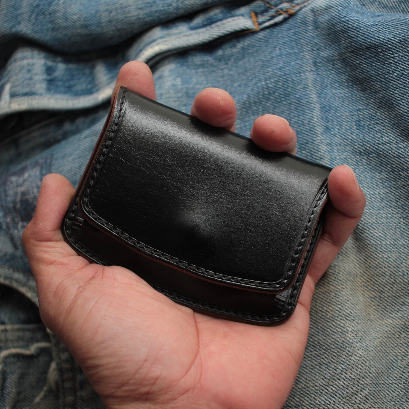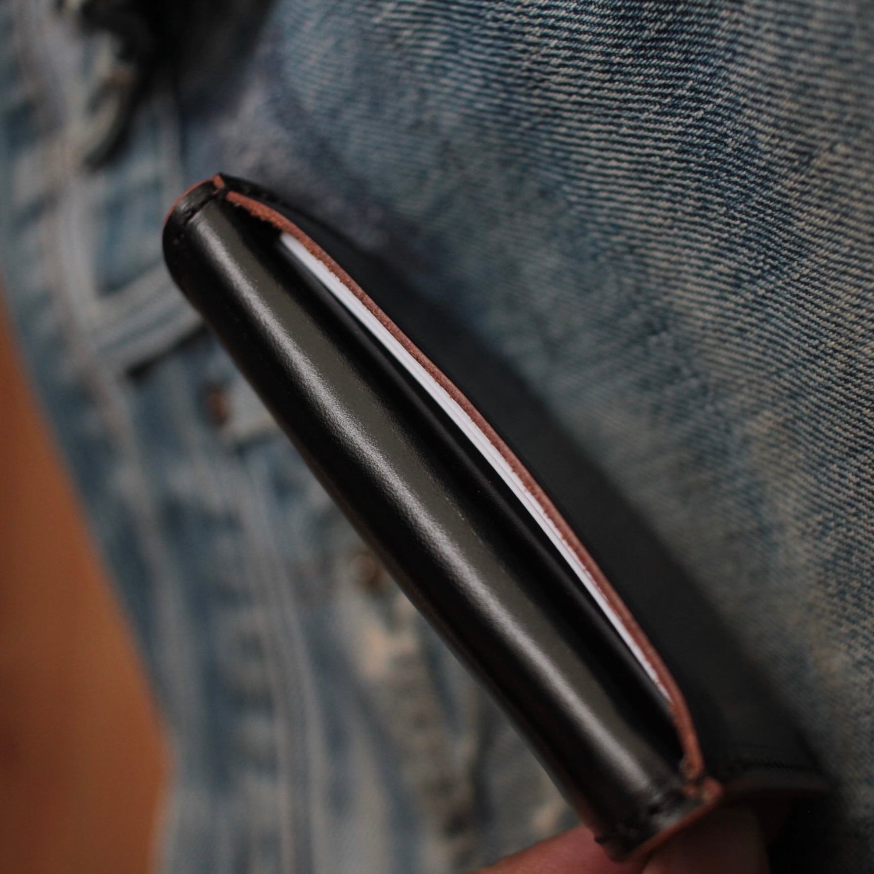 ジーンズのポケットにすっきり収まる約110mm × 約75mmのサイズ感は、普段使いはもちろん、バイクやアウトドアシーンにもぴったり。