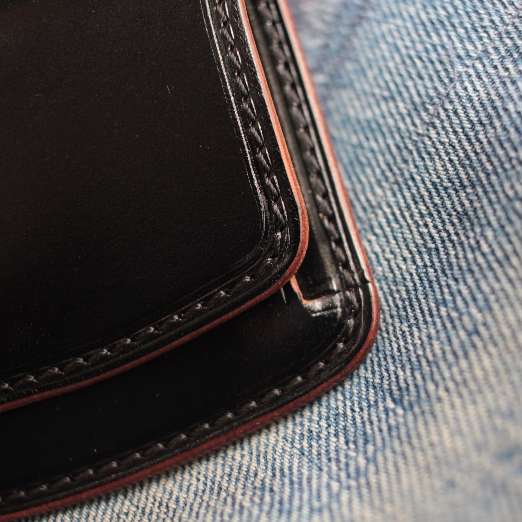 素材には茶芯ブラックのイタリアンダブルショルダー(フルベジタブルタンニン鞣し)を採用。