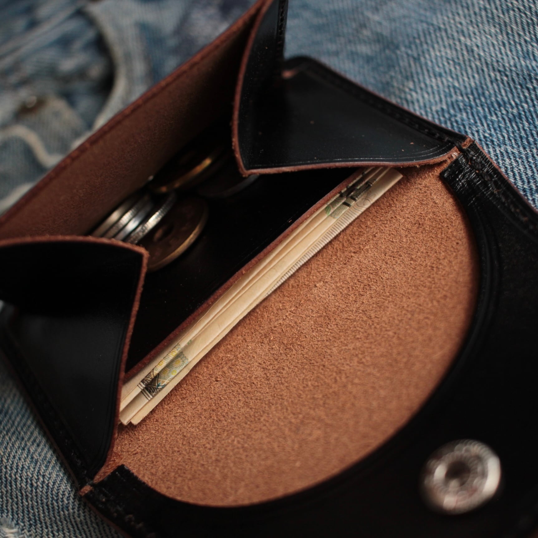 紙幣は4つ折りで約5枚、コインは日常使いに十分な容量を確保し、これひとつで必要最低限の持ち物をコンパクトにまとめられます。