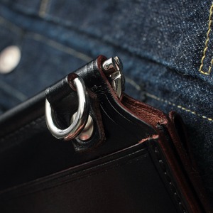 ウォレットチェーンやコードを取り付けるための小さなリングを、マネークリップ背面に追加できます。