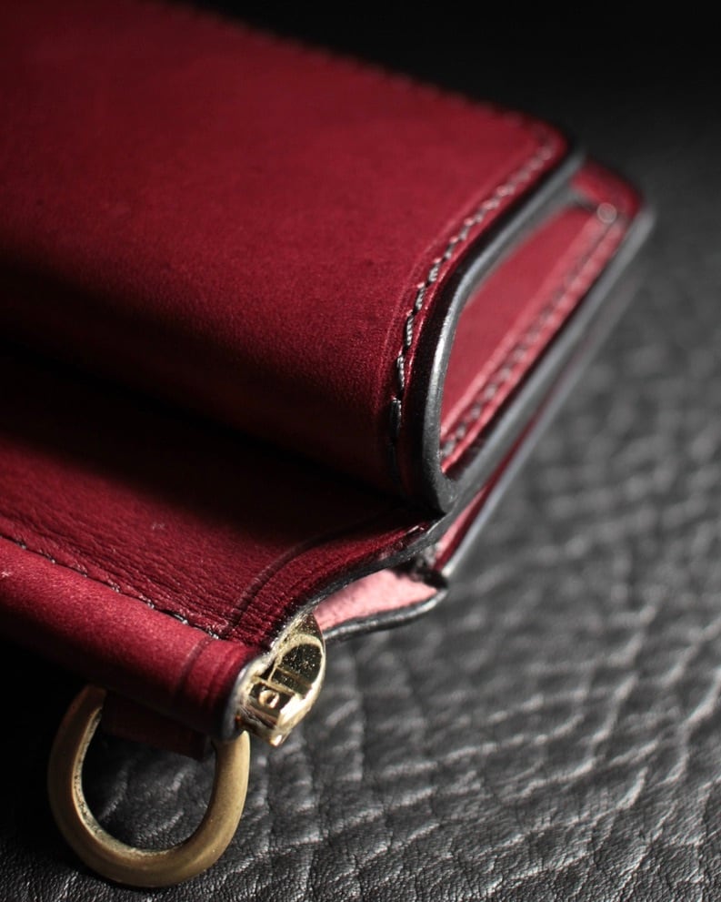 革製品の印象を大きく左右するコバ(断面)を、手作業により 着色・磨き・塗り重ね で仕上げます。輪郭が引き締まり、色の深みと艶が増すことで上質な佇まいに仕上がります。